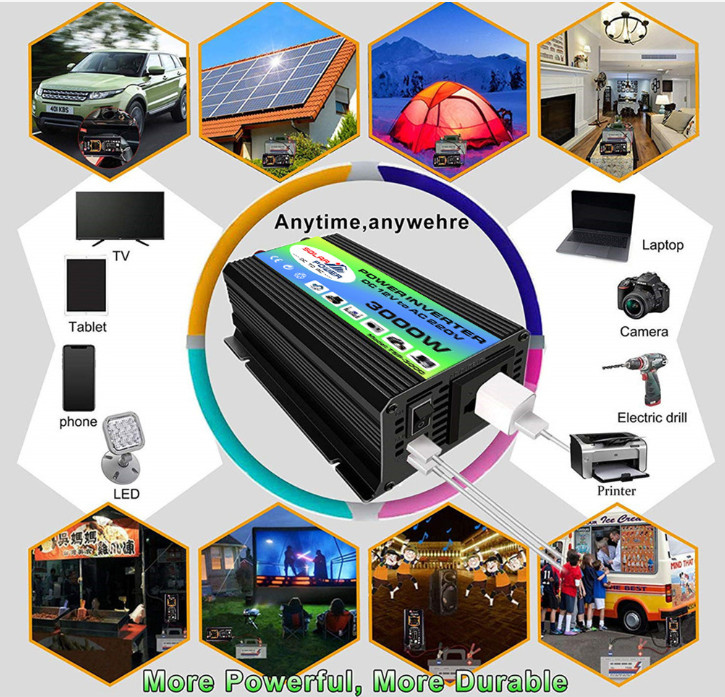 - Dễ dàng cấp điện cho rất nhiều thiết bị cùng lúc: Tivi, tủ lạnh, đèn sáng, Điện thoại, Máy tính bảng, Laptop, Quạt điện gia đình, Máy hút bụi, Cảm biến lốp, Camera hành trình, sạc dự phòng…