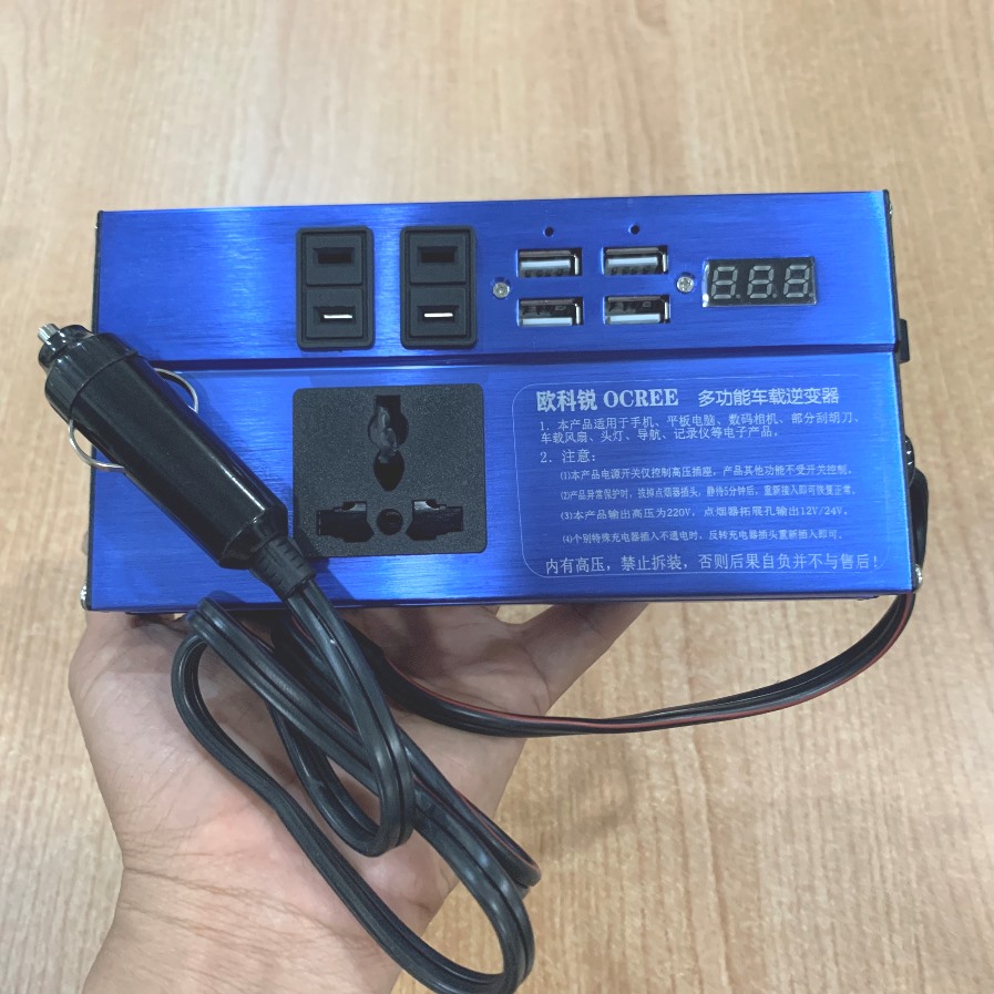 Tẩu chuyển đổi dòng điện 12V lên 220V công suất 60W, cấp điện cùng lúc cho nhiều thiết bị dùng trên xe hơi (TS22)