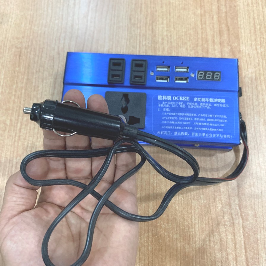 Tẩu chuyển đổi dòng điện 12V lên 220V công suất 60W, cấp điện cùng lúc cho nhiều thiết bị dùng trên xe hơi (TS22)