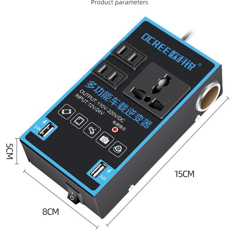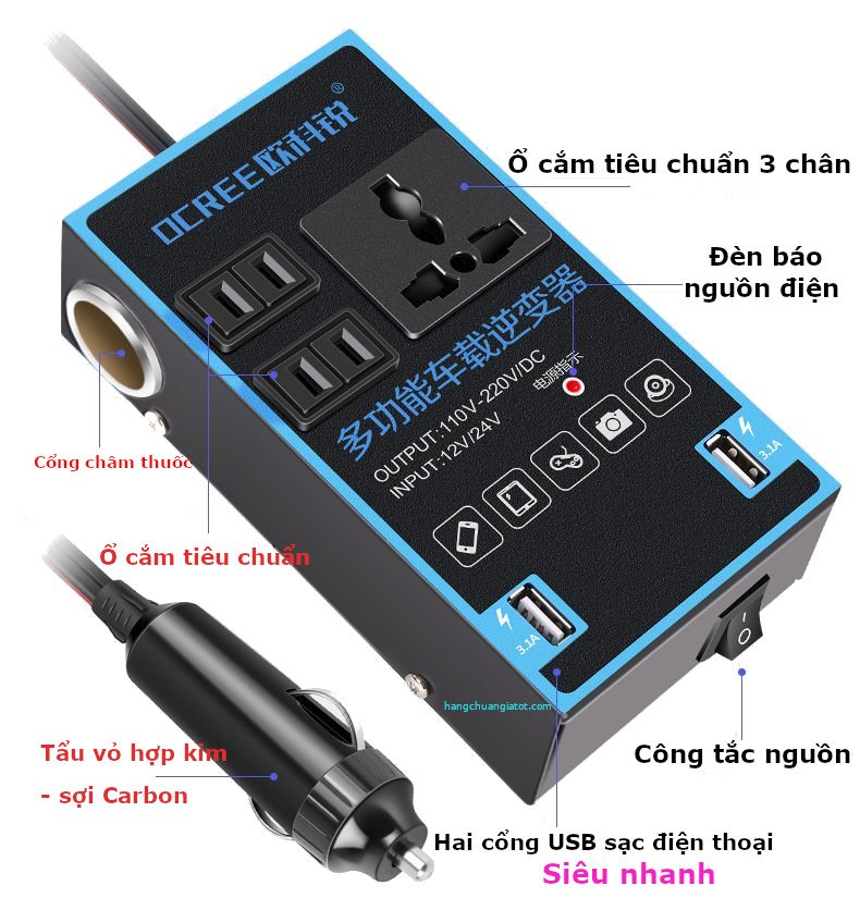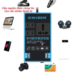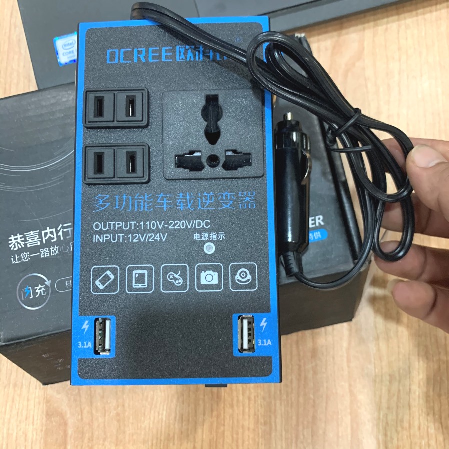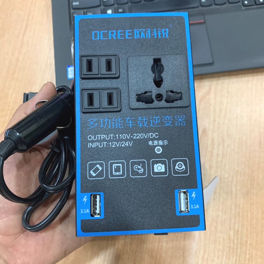 Tẩuchuyển đổi dòng điện từ 24V lên 220V dùng trên ô tô, cấp điện cho nhiều thiết bị, công suất 60W (TS19)