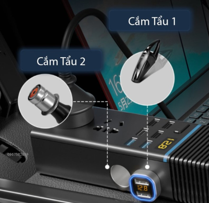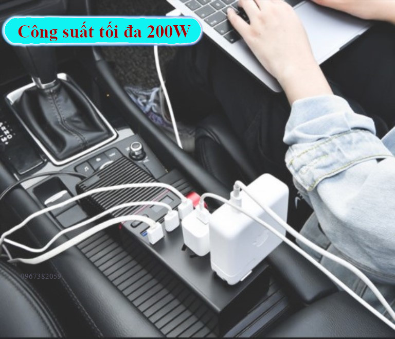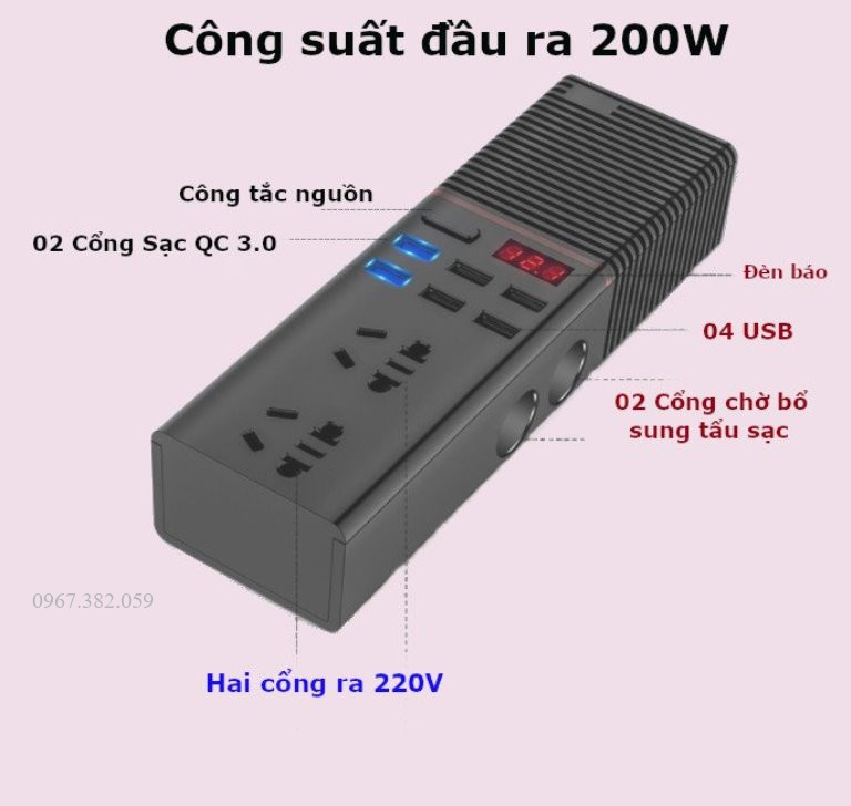 Tẩu chuyển đổi điện INVERTER từ 12V lên 220V công suất 200W dùng trên các dòng xe ô tô (mã TS40)
