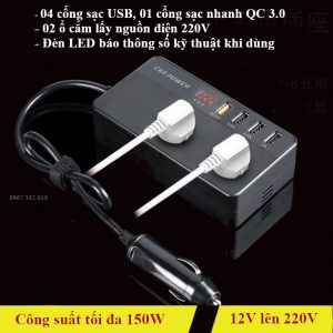 - Chức năng: Chuyển đổi dòng điện 12V trên ô tô lên 220V