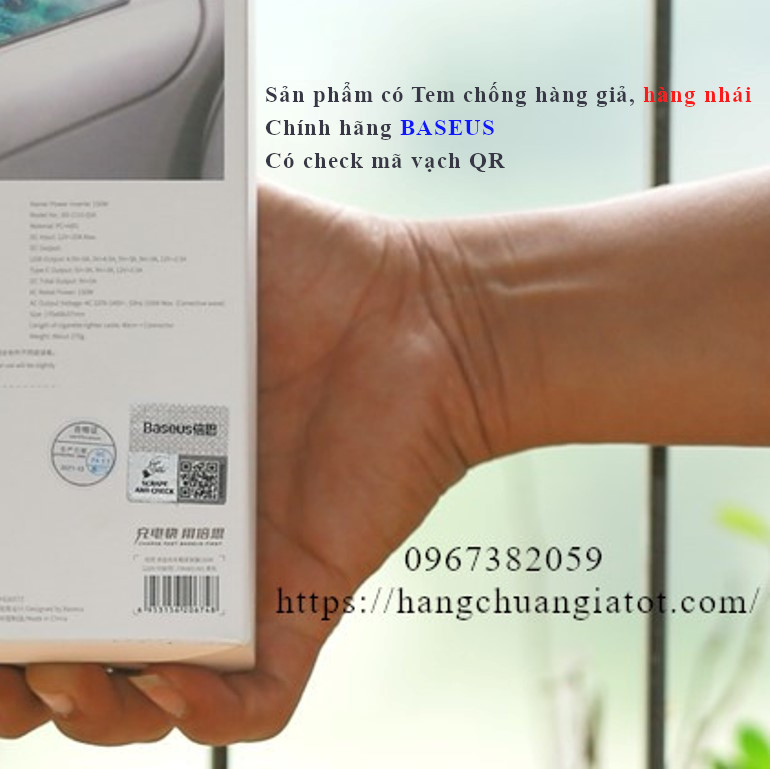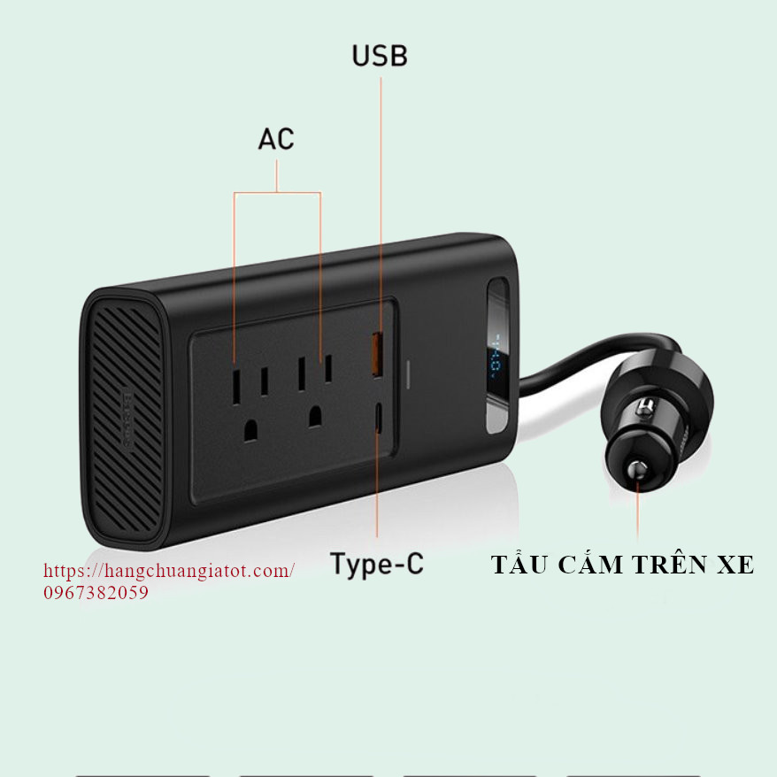 1. Giới thiệu tẩu chuyển đổi dòng điện Baseus 12V lên 220V INVERTER công suất 150W dùng trên xe hơi (mã TS82)