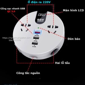 - 03 cổng USB sạc nhanh cho điện thoại và các thiết bị di động