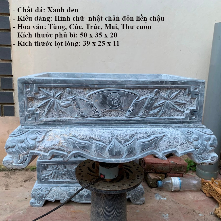 - Chậu đá chữ nhật nguyên khối đục tay 4 mặt trồng cây bonsai được làm kỹ càng không có lỗi từ bàn tay của những người thợ đá lành nghề lâu năm.