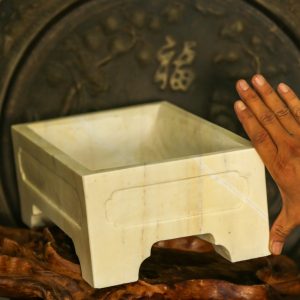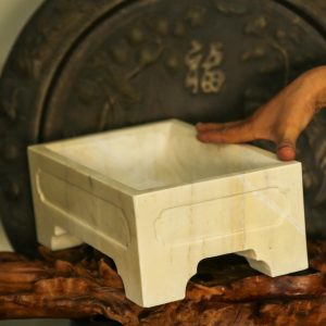 1. Giới thiệu Chậu chữ nhật đá vàng đục khắc chạm tay nguyên khối thủ công 4 mặt kỹ càng trồng bonsai, KT: 33x21x25 (CH25)