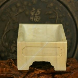 3. Cam kết Chậu chữ nhật đá vàng đục khắc chạm tay nguyên khối thủ công 4 mặt kỹ càng, KT: 30x20x12 (CH26)