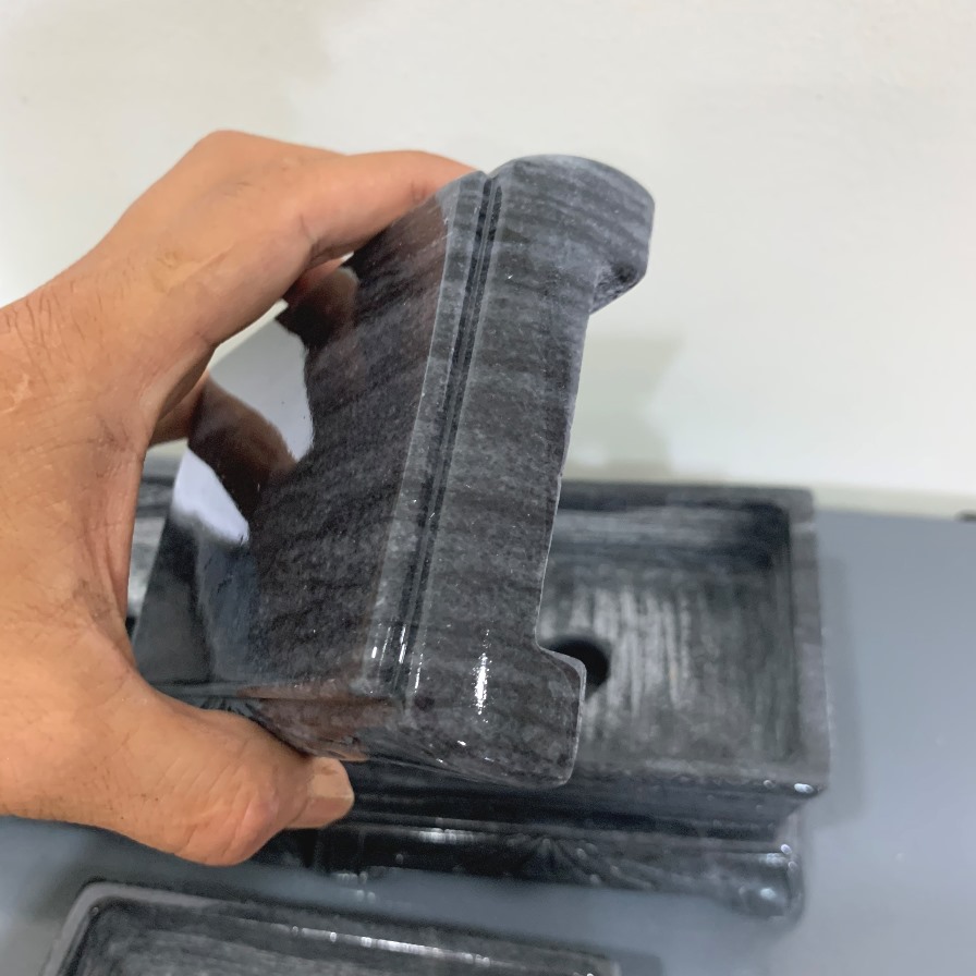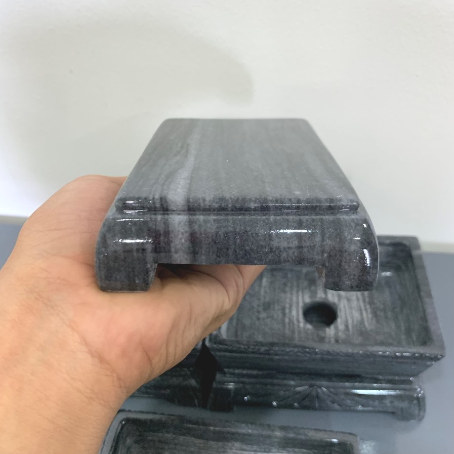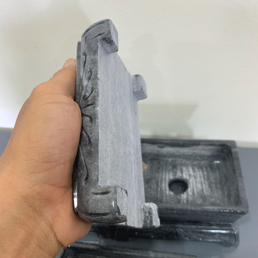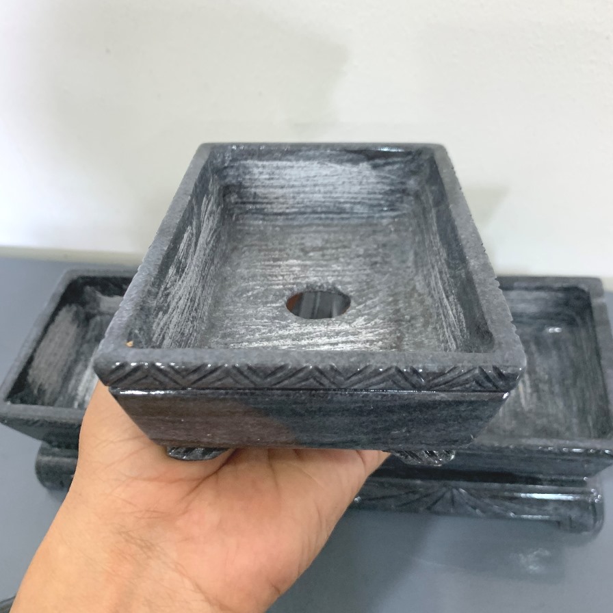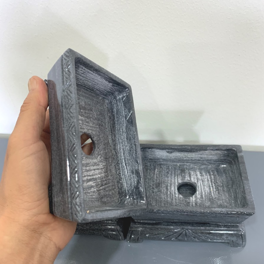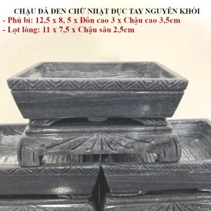 4. Video Chậu đá đen đục khắc tay nguyên khối chữ nhật chân đôn dời trồng bonsai mini, KT: 12.5×8.5×6.5 (CH20)