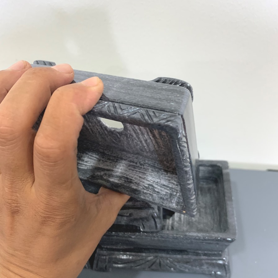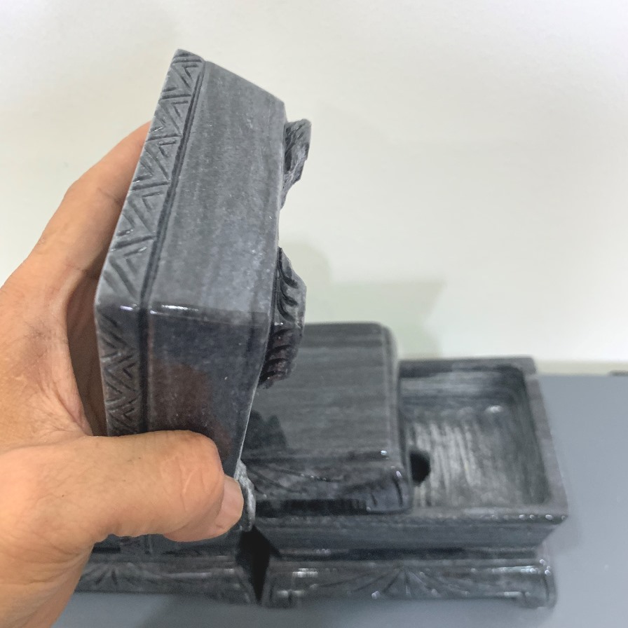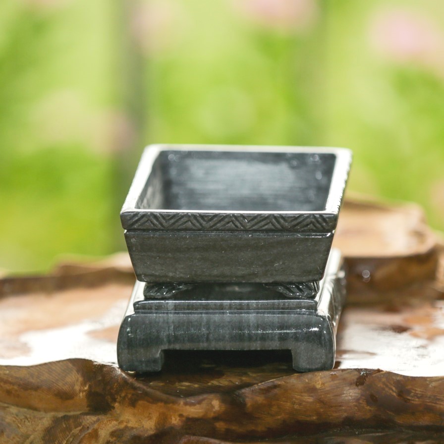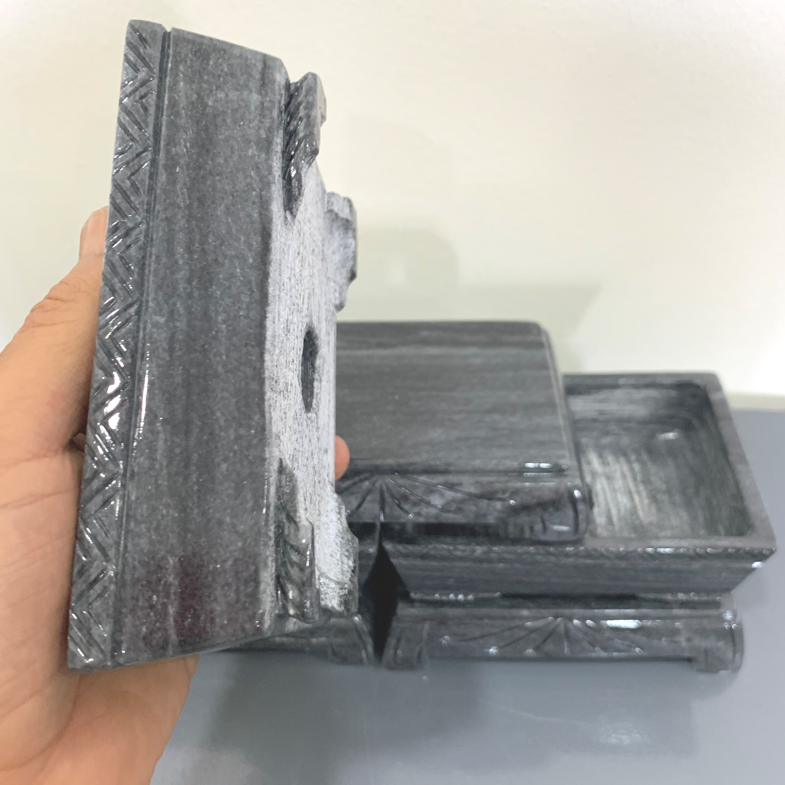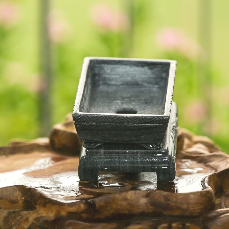 4. Video Chậu đá đen đục khắc tay nguyên khối chữ nhật chân đôn dời trồng bonsai mini, KT: 12.5×8.5×6.5 (CH20)