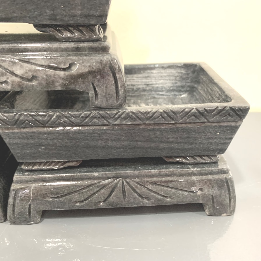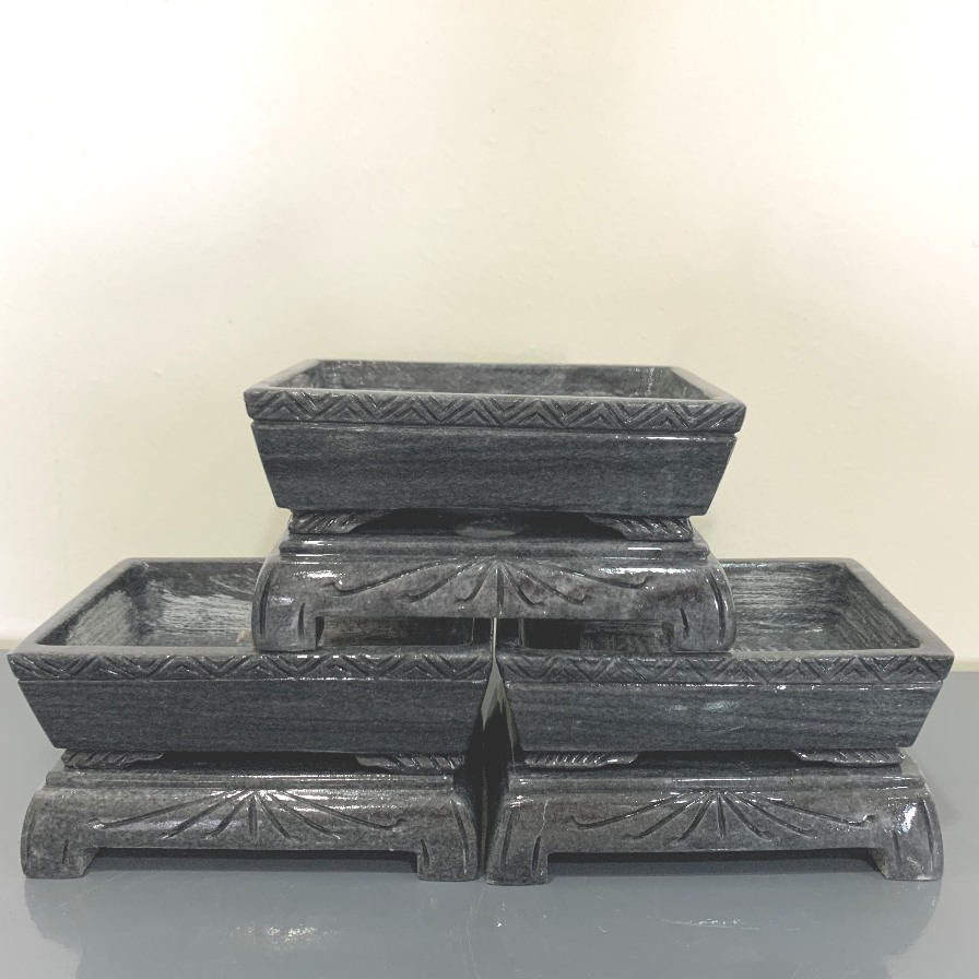 - Chậu đá Cẩm thạch chữ nhật trồng cây bonsai mini, để văn phòng, gia đình được đục kỹ càng, sắc nét. Làm ra từ bàn tay thợ đá lành nghề lâu năm
