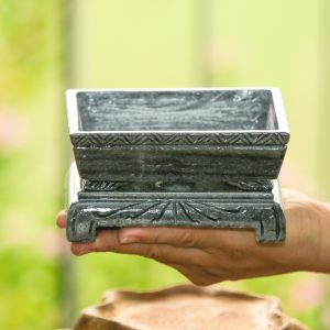 1. Giới thiệu về Chậu đá Cẩm thạch đục chạm tay nguyên khối chữ nhật chân đôn dời trồng bonsai mini, KT: 12.5×8.5×6.5 (CH20)