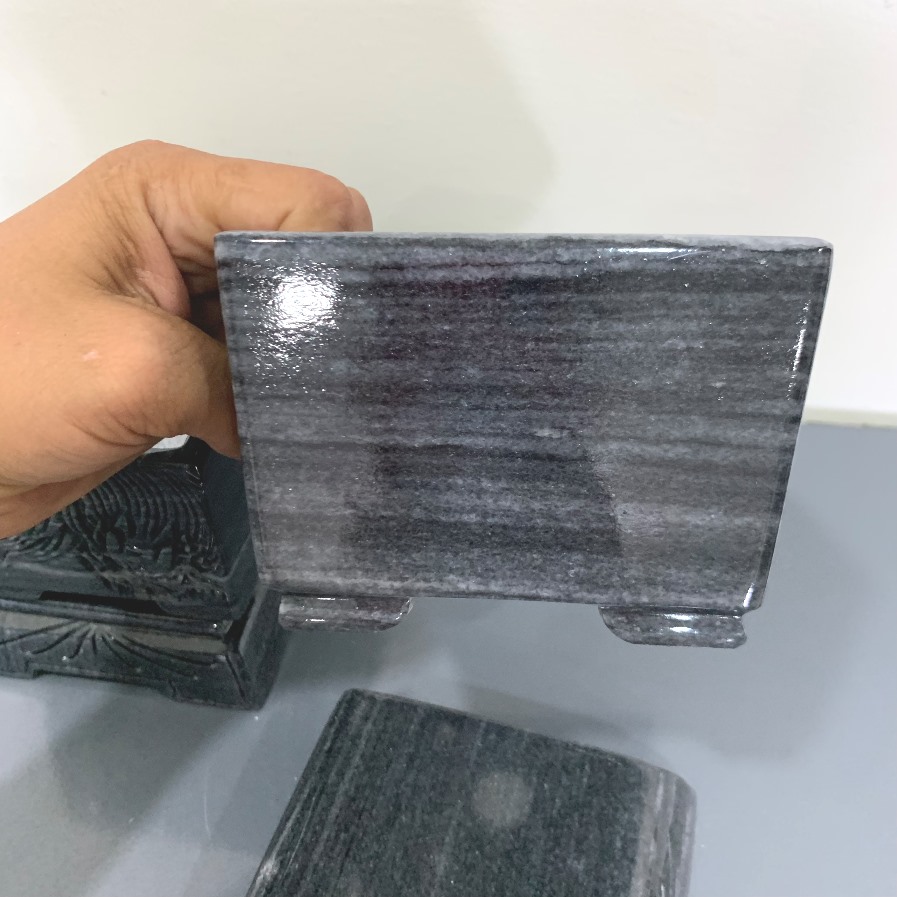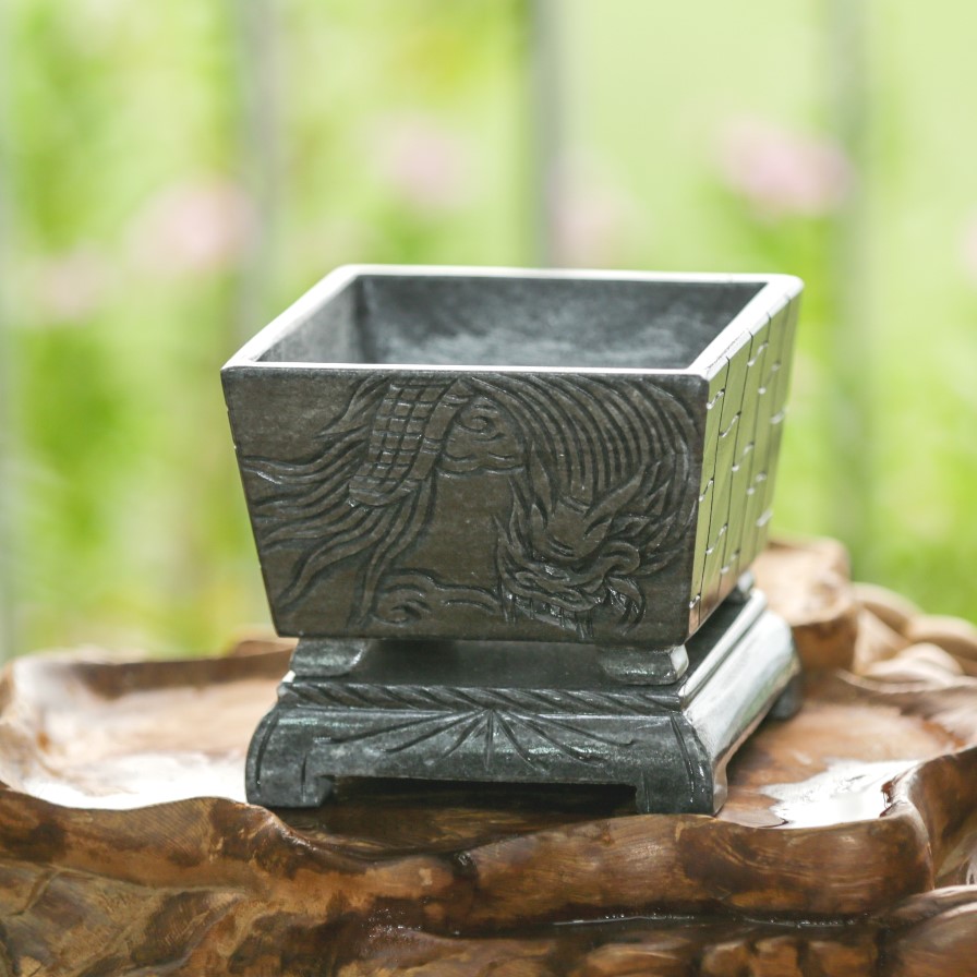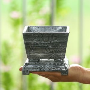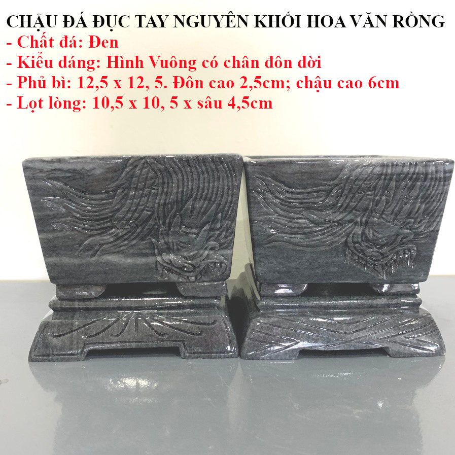 1. Giới thiệu về Chậu đá đen hình vuông đục khắc chạm thủ công bằng tay nguyên khối trồng bonsai, thả hoa, KT: 12,5×12,5×8,5 (CH18)
