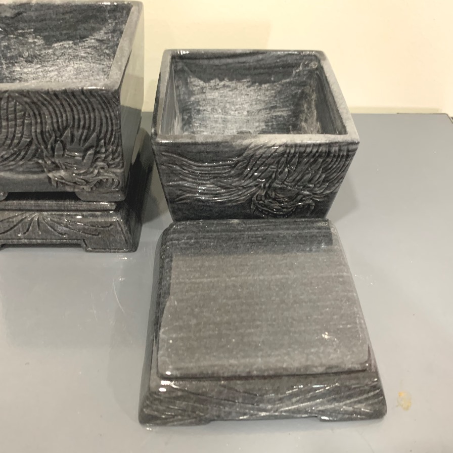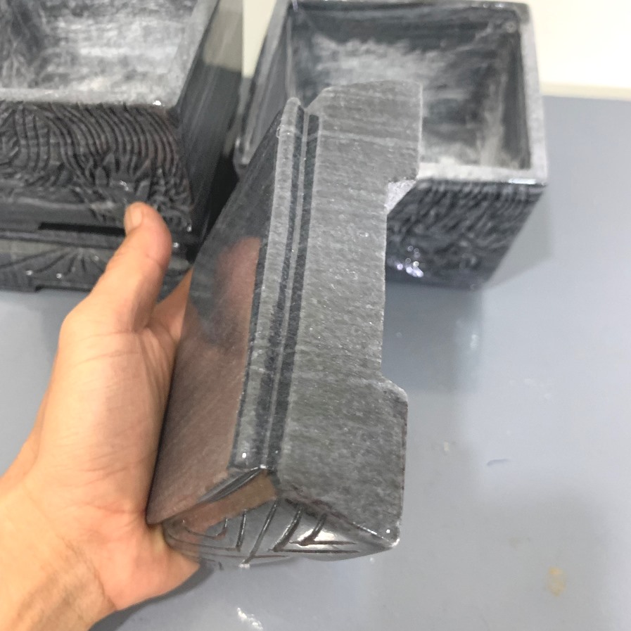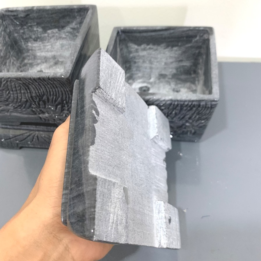 5. Hình ảnh thực tế Chậu đá đen hình vuông có đôn đục tay nguyên khối trồng cây, thả hoa, để bàn làm việc, ban công