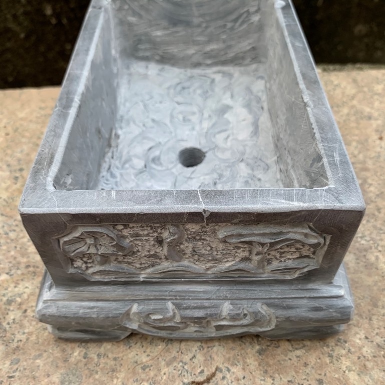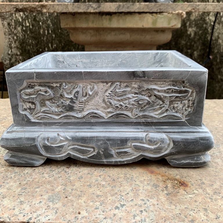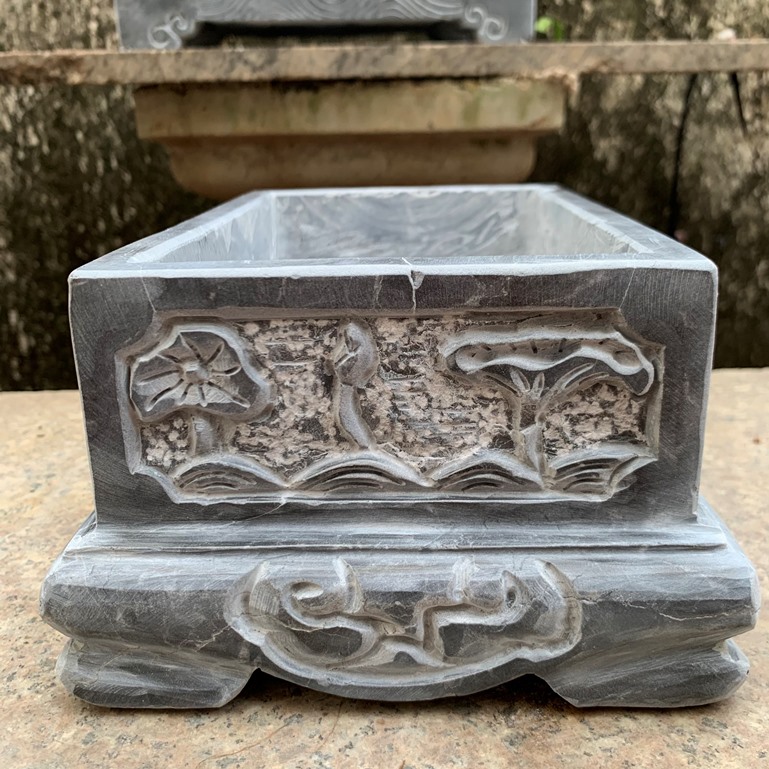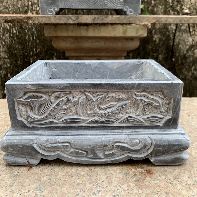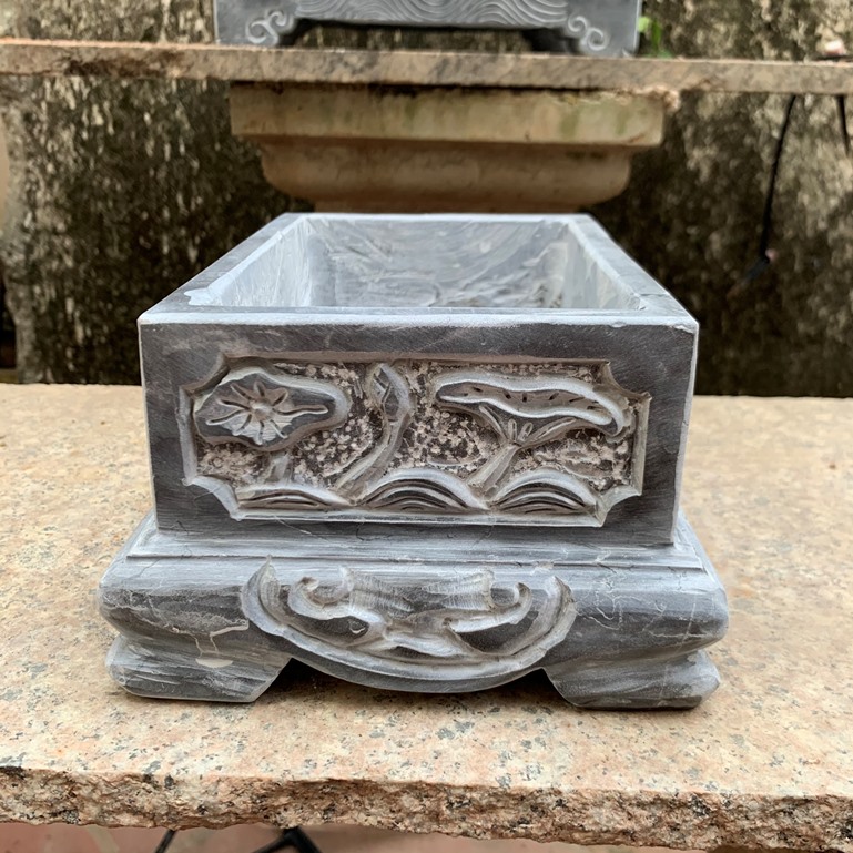 - Chậu đá đục tay nguyên khối kỹ càng, không có lỗi. Hoa văn đục nổi sắc nét