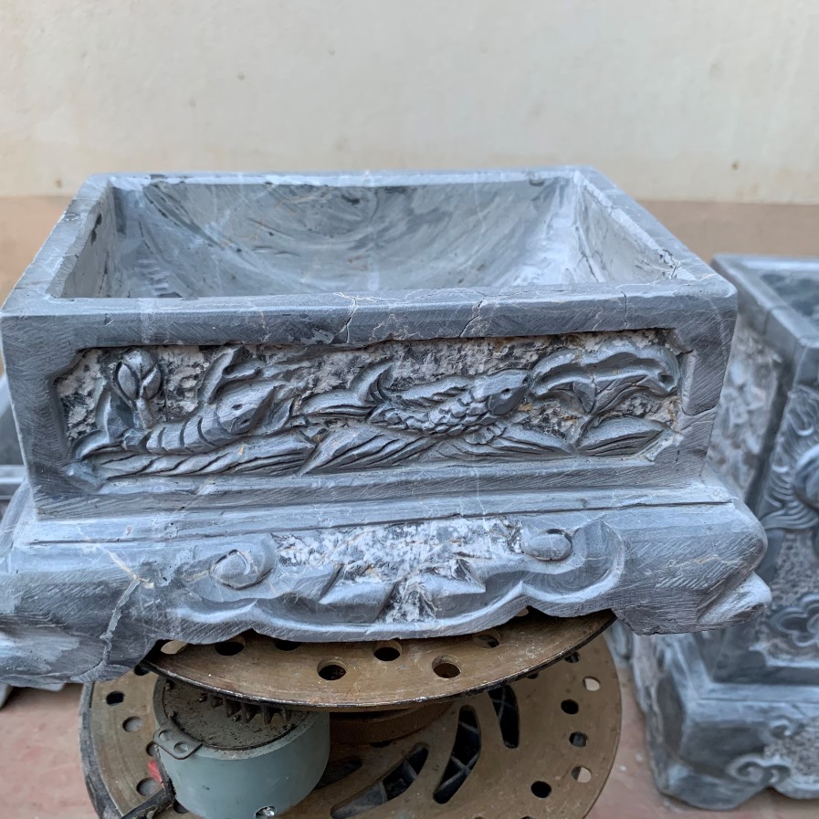- Chậu đá xanh đá đen được làm ra từ bàn tay thợ đá lành nghề lâu năm, đục tay kỹ càng không có lỗi.