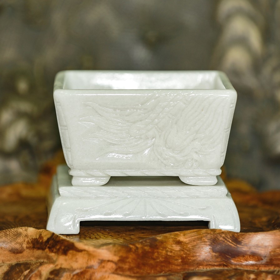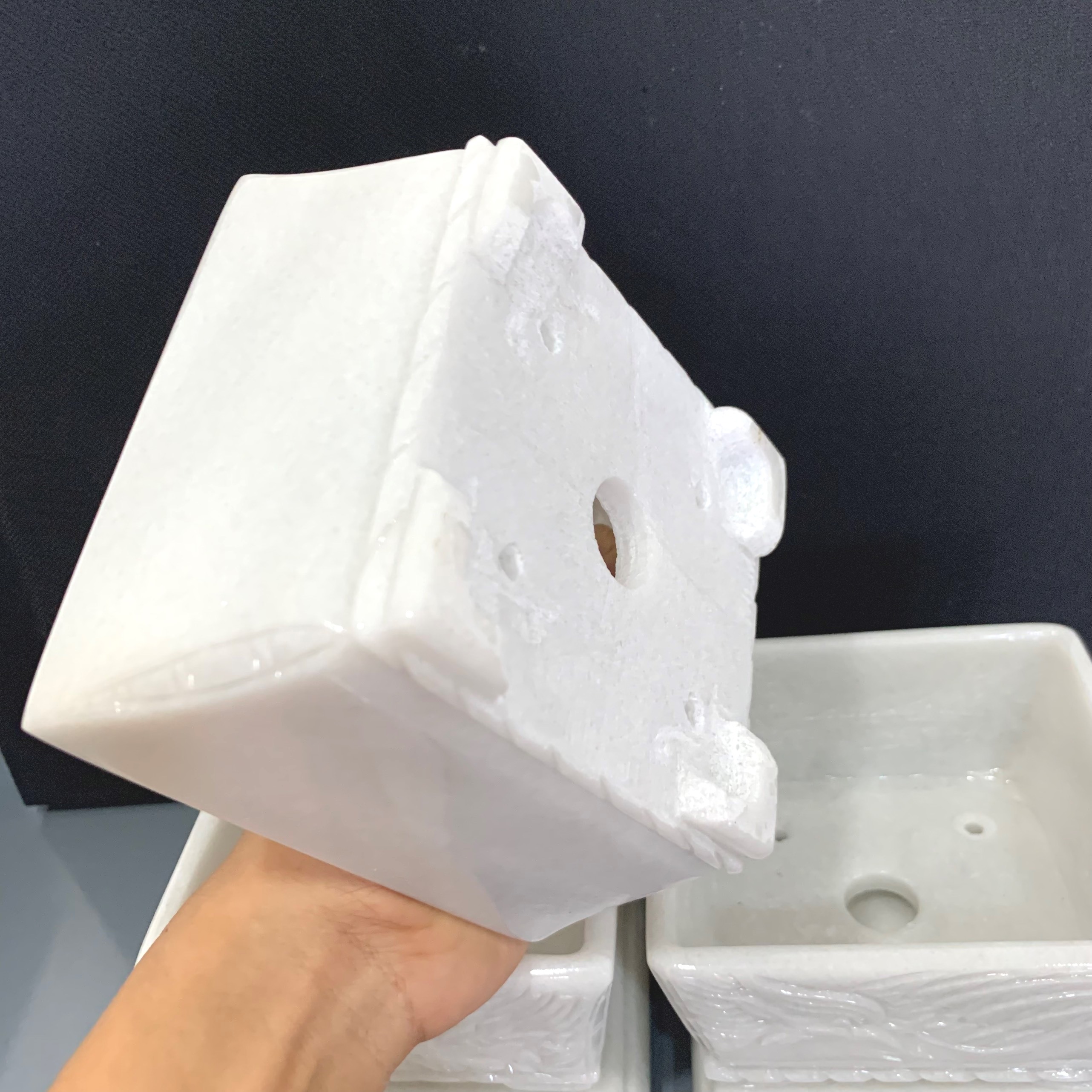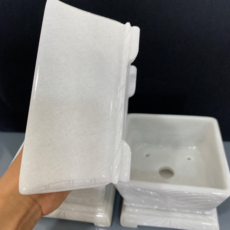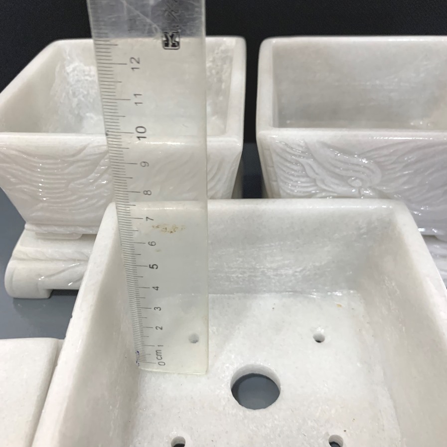 - Chậu đá trắng xám trồng cây bonsai mini, để văn phòng, gia đình được đục kỹ càng, sắc nét. Làm ra từ bàn tay thợ đá lành nghề lâu năm