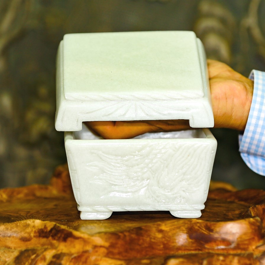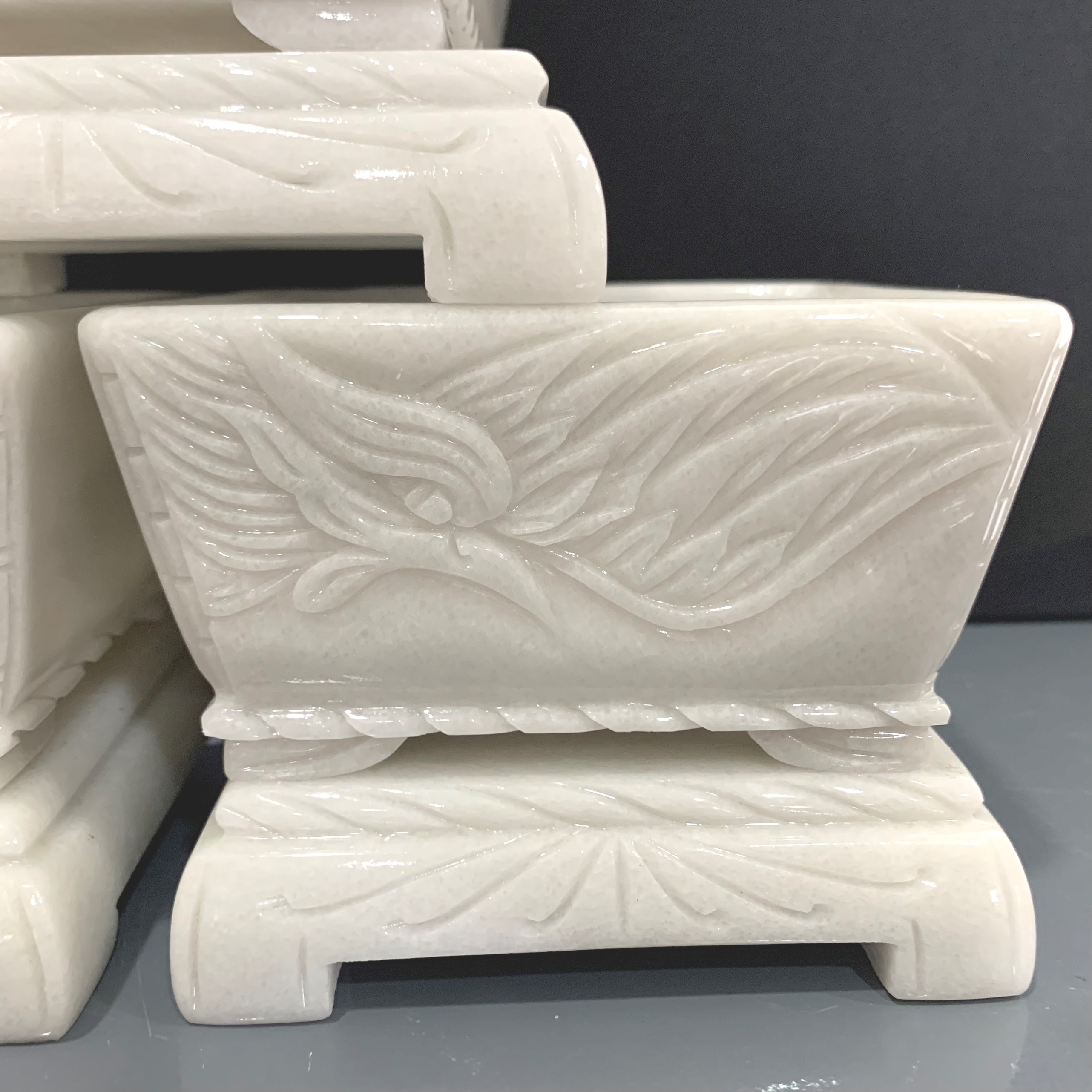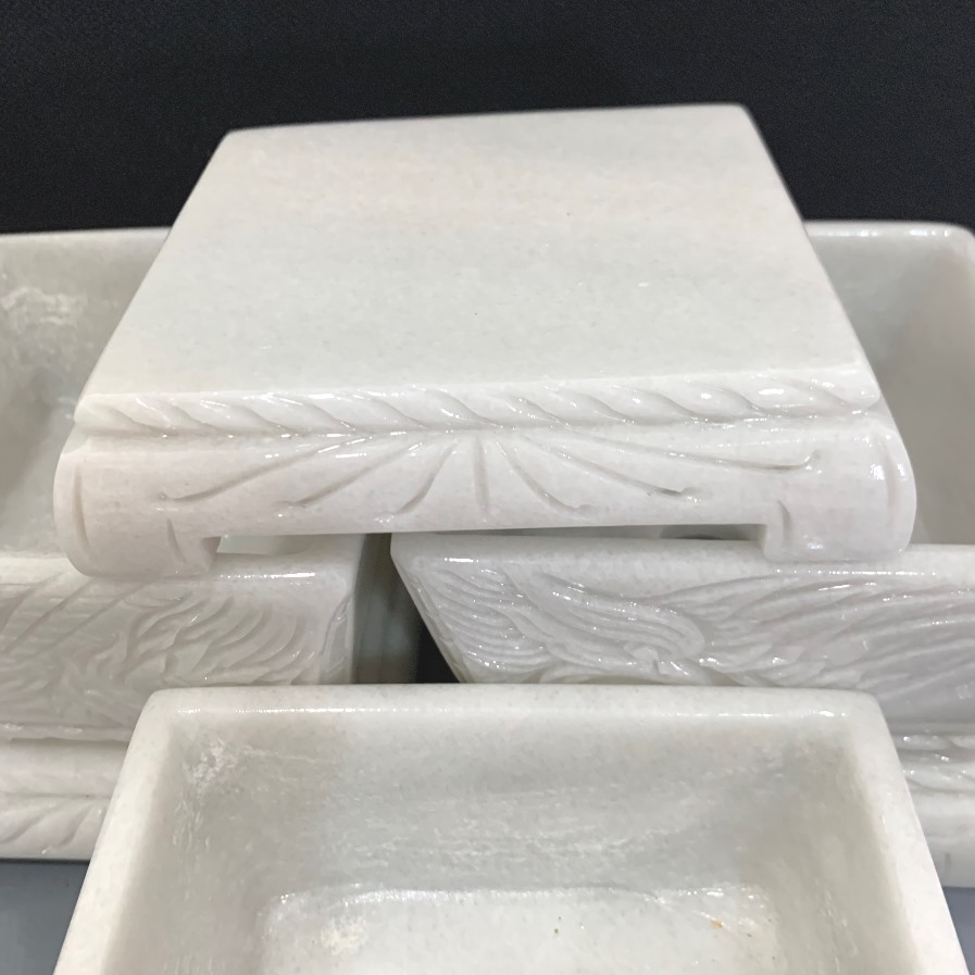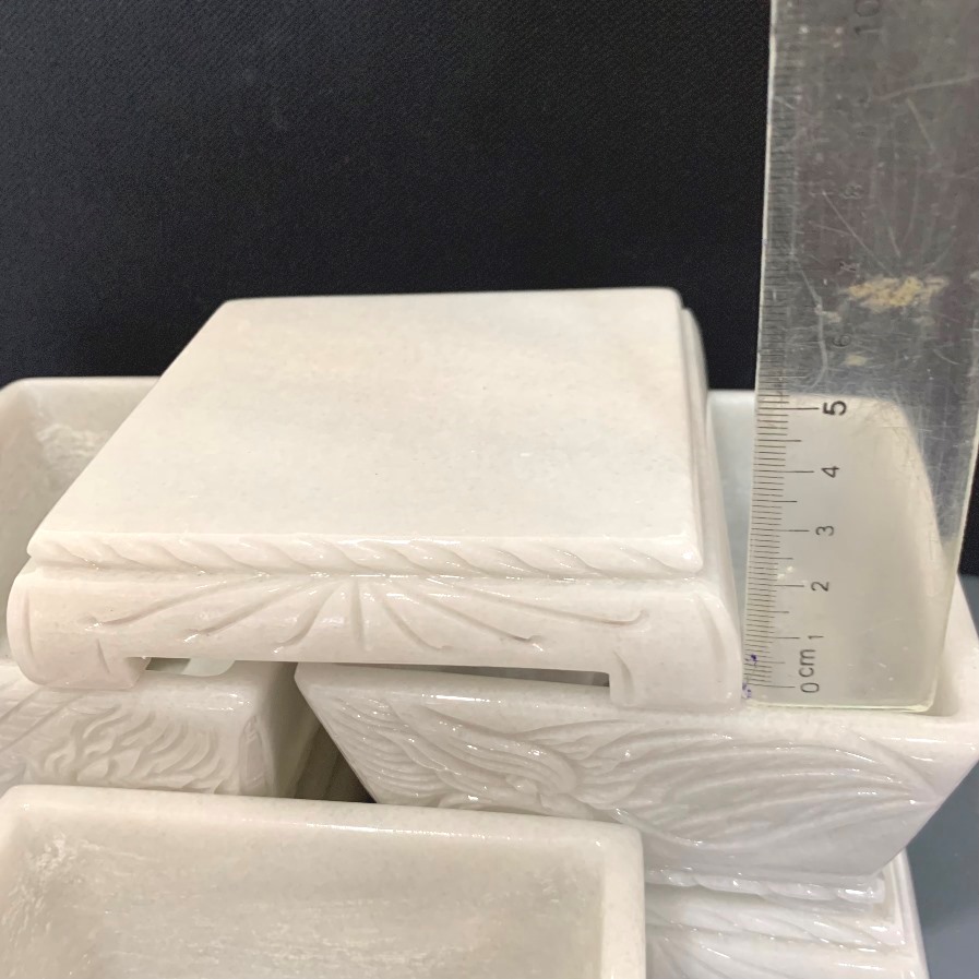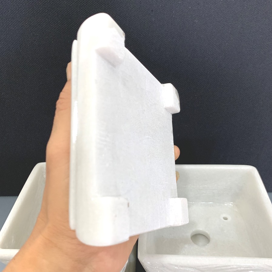 Chậu đá cẩm thạch đục chạm tay nguyên khối chữ nhật chân đôn dời trồng bonsai mini, KT: 12.5x8.5x6.5 (CH20)