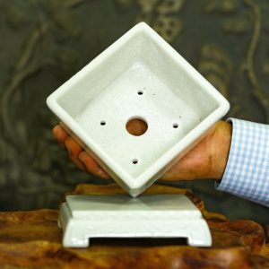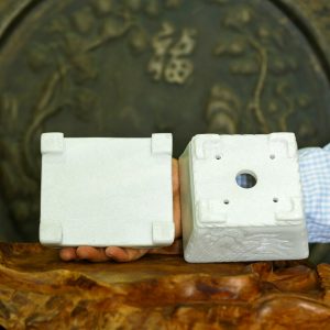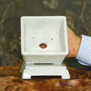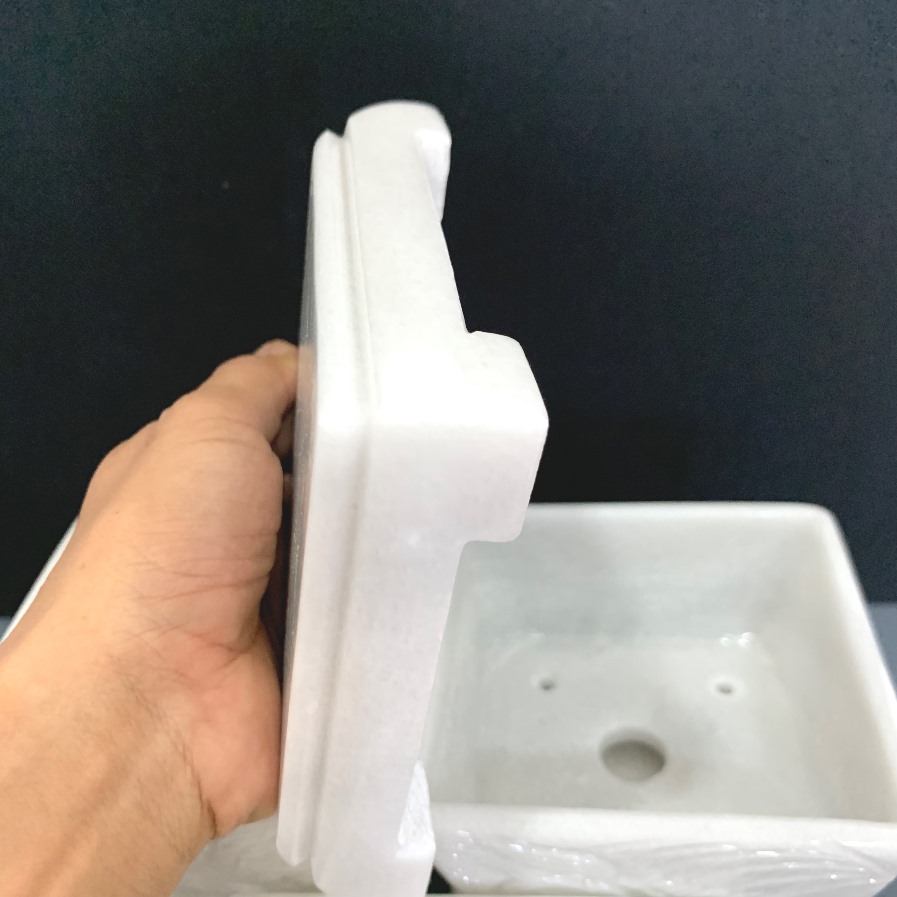 1. Giới thiệu về Chậu đá trắng xám vuông đục tay trồng bonsai mini chân đôn dời, KT: 12x12x9 (CH19)