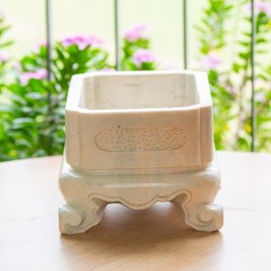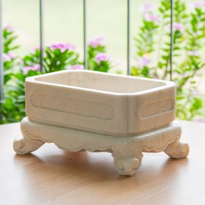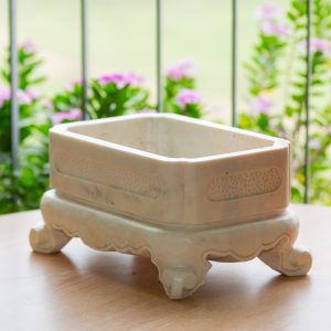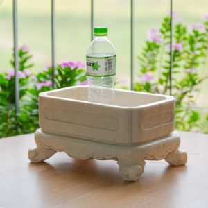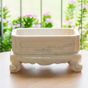 - Kiểu dáng: Chậu chữ nhật có chân liền khối, đục khuôn tranh 4 mặt