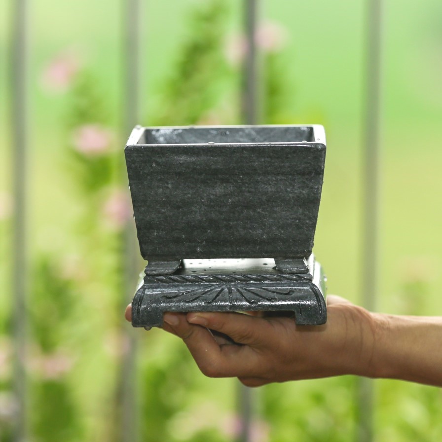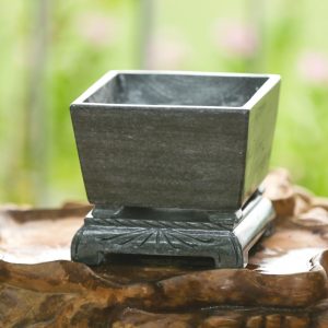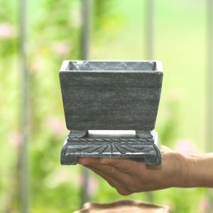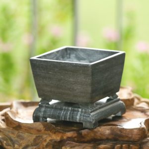 5. Hình ảnh thực tế Chậu đục khắc trơn 4 mặt bằng tay đá Cẩm thạch có chân đôn dời trồng bonsai mini, KT: 12,5×12,5×8,5 (CH24)