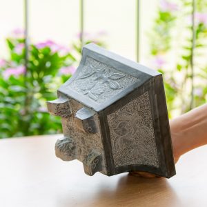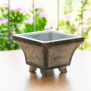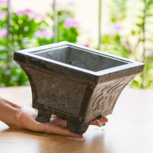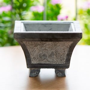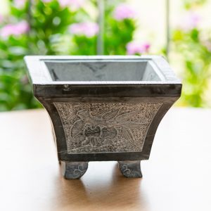 Chậu mini đá xanh đen nguyên khối đục tay 4 mặt trái Đào trồng bonsai mini, cây để bàn trà (mã CH30)