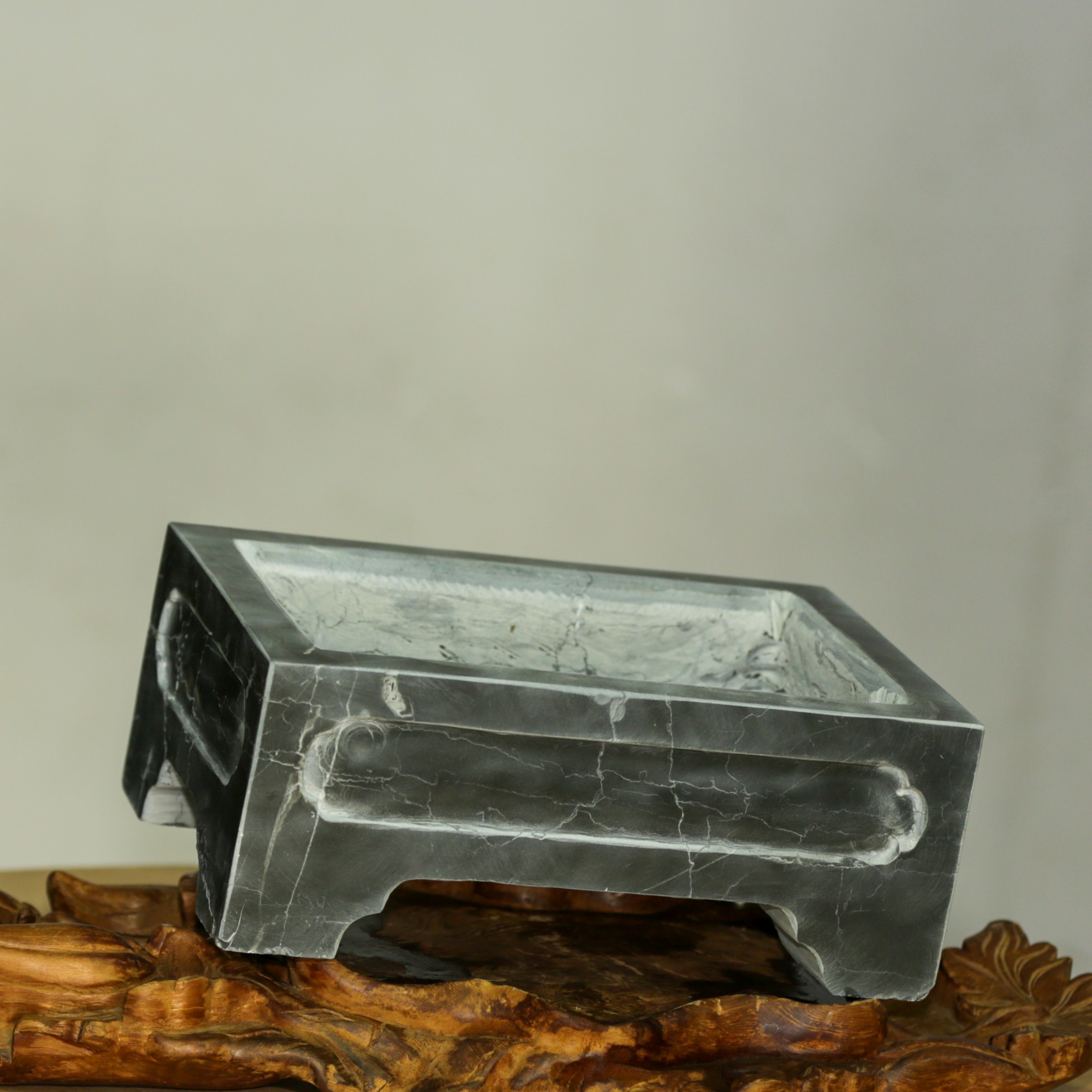 5. Hình ảnh thực tế Chậu chữ nhật đá xanh đen đục khắc chạm tay nguyên khối, KT: 30x20x12 (CH26)
