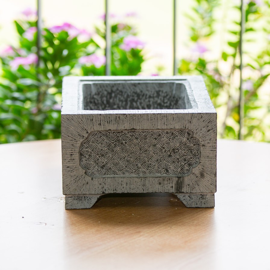 - Chậu đá xanh đen trồng cây bonsai mini, để văn phòng, để kê bàn trà gia đình được đục kỹ càng, sắc nét. Làm ra từ bàn tay thợ đá lành nghề lâu năm