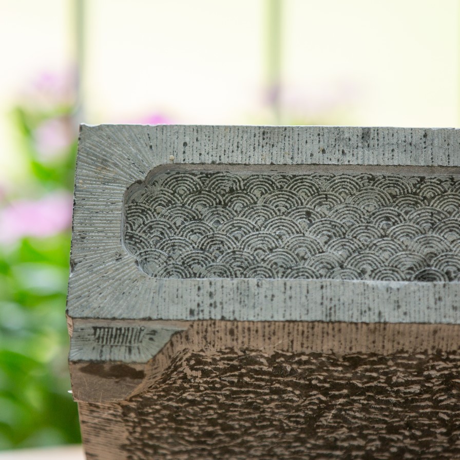 4. Hình ảnh chậu trồng đá xanh đen nguyên khối đục tay vẩy Rồng trồng bonsai, thả hoa, thả bèo KT: 25X19X12 (CH28)