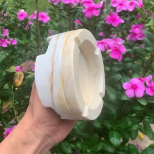 5. Hình ảnh thực tế Gạt tàn thuốc lá, xì gà đá Vàng nguyên khối đục khắc thủ công bằng tay (G06)
