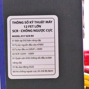 - Loại máy: Điện tử SCR 12 fet lớn Cao Cấp Siêu bền khỏe, tiết kiệm điện bình