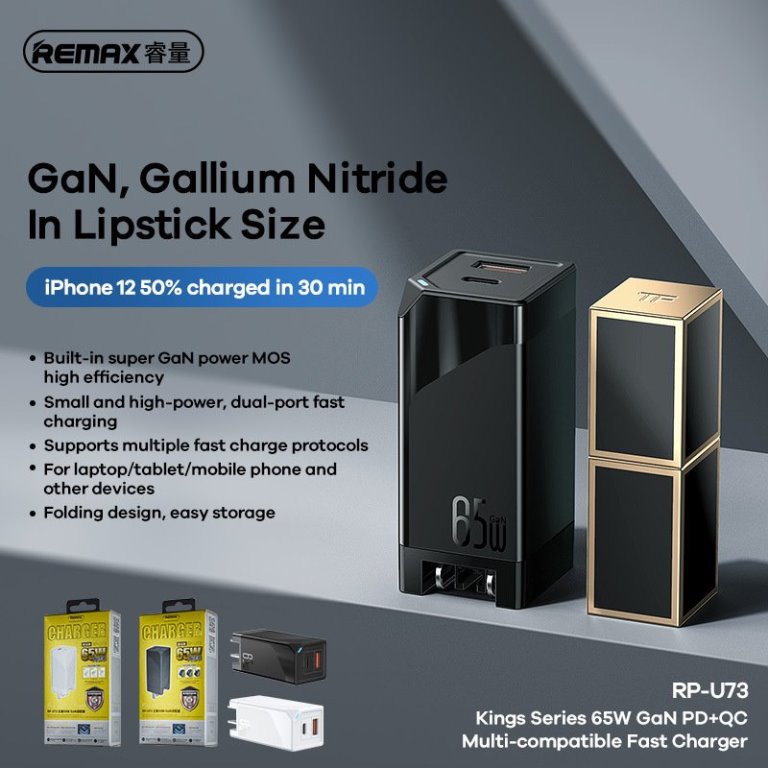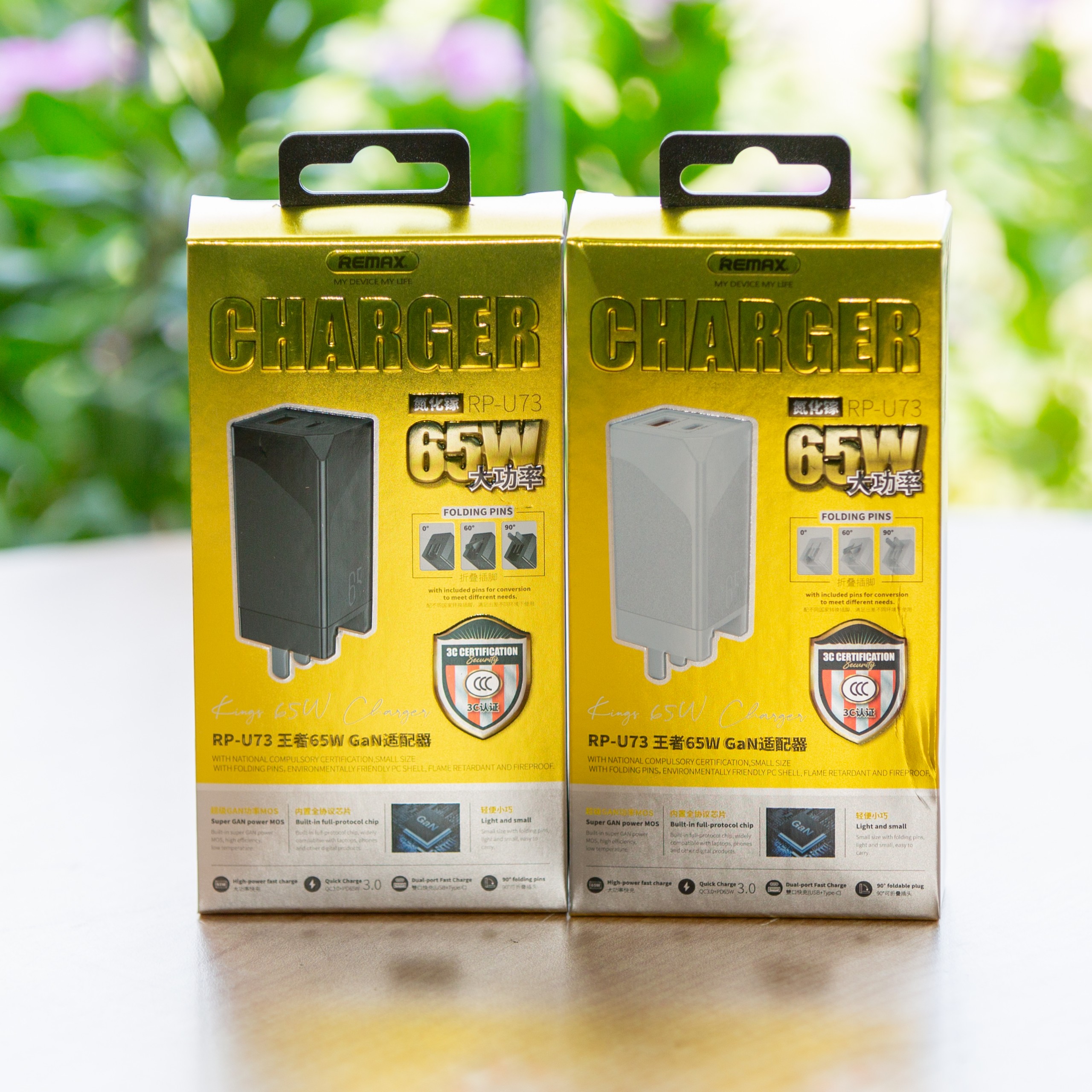 Củ cốc sạc siêu nhanh QC & PD 3.0 chính hãng Remax 02 cổng sạc: USB và Type C công suất 65W (mã SA22)