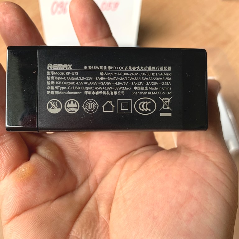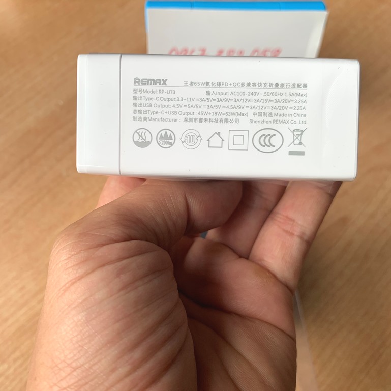 Củ cốc sạc siêu nhanh QC & PD 3.0 chính hãng Remax 02 cổng sạc: USB và Type C công suất 65W (mã SA22)