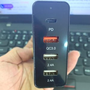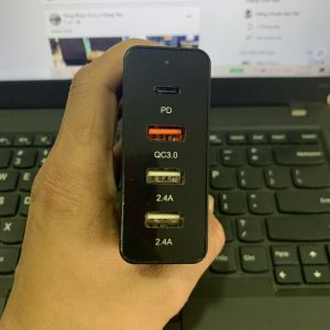 - Đây là sản phẩm cao cấp chuẩn sạc nhanh có 04 cổng ra sạc cùng lúc cho nhiều điện thoại, thiết bị kèm chân giá đỡ điện thoại, máy tính bảng