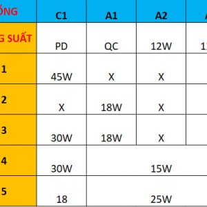 - Nguồn điện ra: 03 cổng USB, 01 cổng ra Type C với công suất sạc tối đa 48W