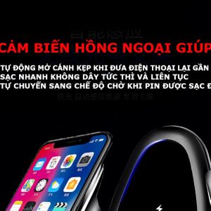 - Kẹp giá đỡ trên ô tô có chức năng cảm ứng hồng ngoại tự đóng mở khi đưa thiết bị lại gần, rất tiện khi đang lái cần để kẹp điện thoại, không mất thao tác tháo lắp.